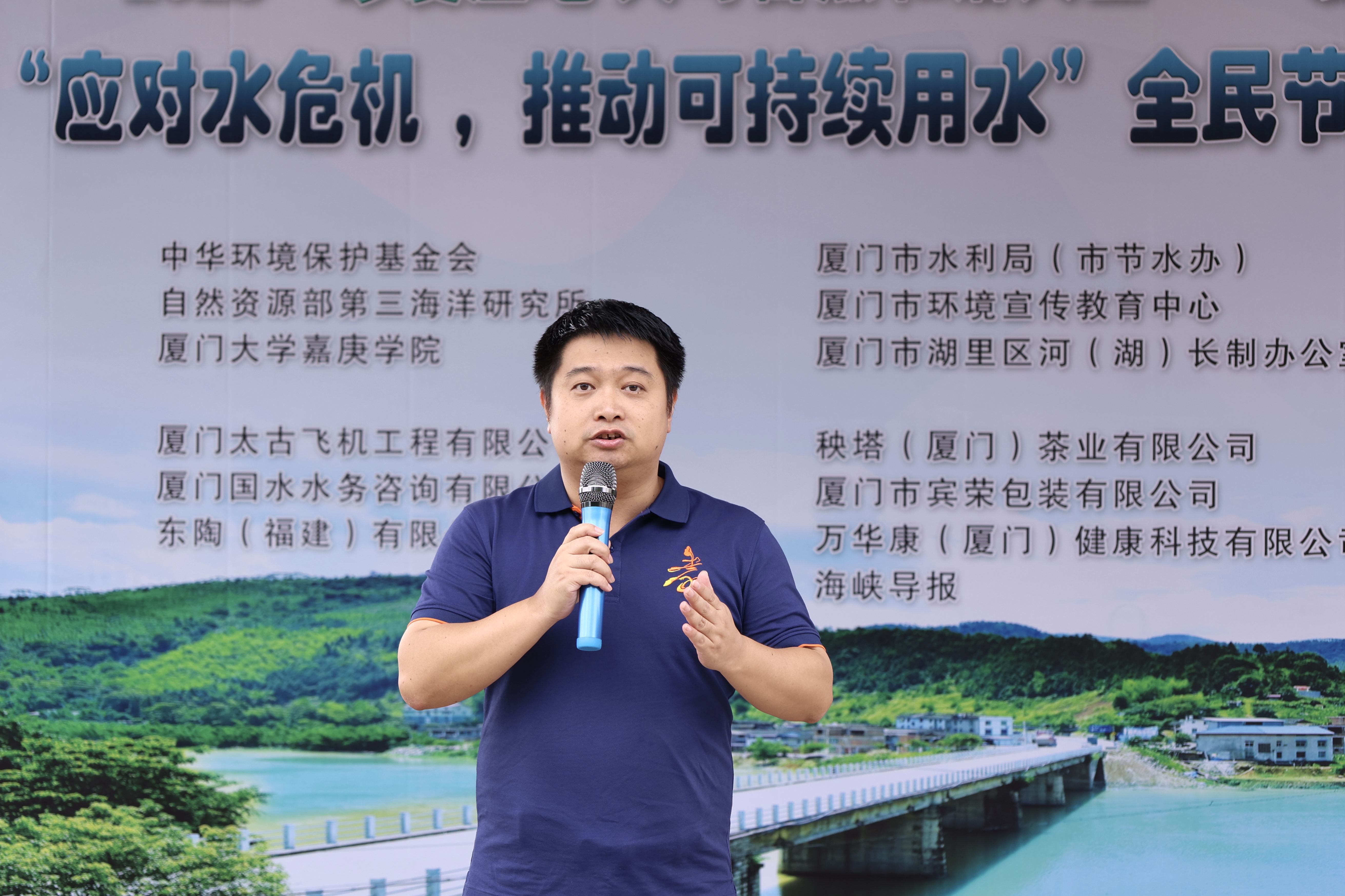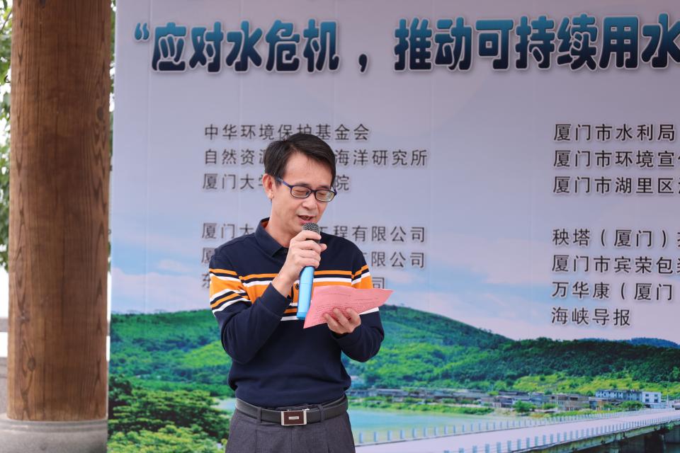 活动伊始,厦门市水利学会秘书长林焕龙代表厦门市水利局和市水利学会为本次活动致辞,他希望通过联合倡议活动,能够倡导更多的社会力量关注和保护水源环境,共同关注“人与自然和谐共生”的发展理念,使每个人都成为节水护水减碳行动的重要参与者和贡献者。