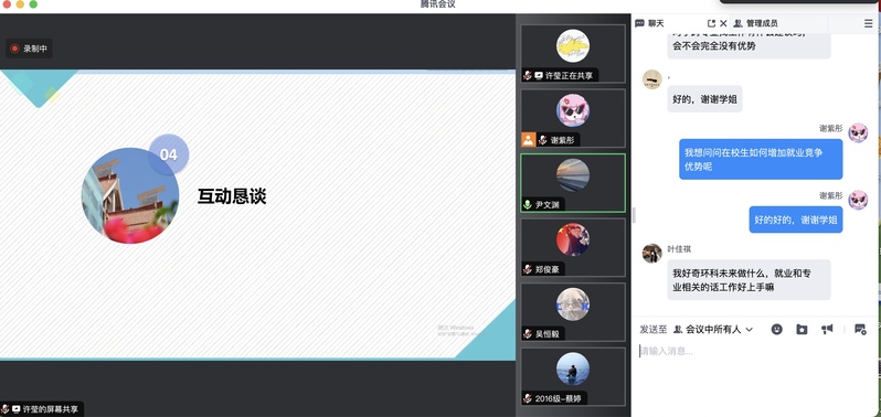 最后,部分毕业生们提出了疑问,老师与优秀校友一一进行了解答。至此,环境科学与工程学院毕业生就业指导会顺利结束。