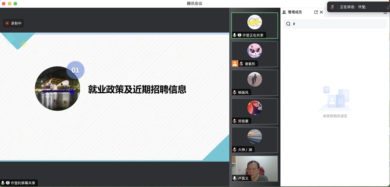 随后,辅导员许莹老师简单介绍了当前就业政策及近期就业信息。
