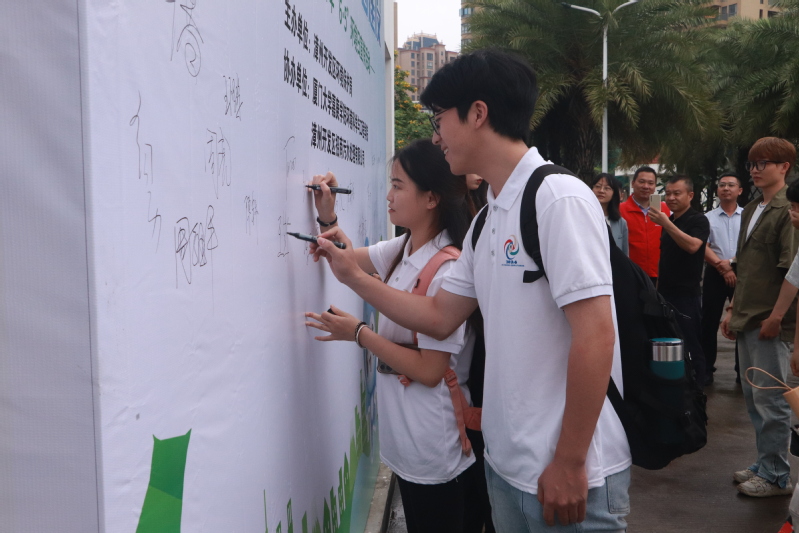 活动伊始,林朝晖副主任致辞表示,漳州开发区深入推进绿色可持续高质量发展,狠抓生态环境问题整治,通过一些列有效的措施,使得开发区的生态环境质量得到了全面且有效的维护。2021级环境科学与工程专业方凡同学代表开发区青年发言,提出“开发区青年伙伴们行动起来,做习近平生态文明思想的积极传播者和模范践行者,做生态文明建设的实践者、推动者”的倡议。
