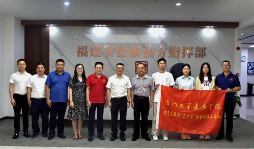 8月5日,厦门大学党委常委、厦门大学漳州校区管委会主任、厦门大学嘉庚学院党委常务副书记黎永强,厦门大学嘉庚学院党委副书记杨云良,厦门大学嘉庚学院院长助理、学工部部长、团委书记姚祖婵等和实践队成员一起走访了福建援疆前方指挥部。在此一行人与福建援疆前方指挥部总指挥长黄立峰召开了座谈会,之后在黄立峰带领下参观了援疆史馆,深入了解了福建援疆史和援疆干部的光荣事迹。了解了纵观主要以福建援疆前方指挥部为主力对新疆维吾尔自治区昌吉回族自治州的助力,帮助推动昌吉的经济发展:横观百闽企业的援疆产业的发展对新疆维吾尔自治区的经济推动作用。这些是新疆维吾尔自治区与闽南区域的团结友好的有力例证,也同样是促进民族融合与经济发展的良好成果。