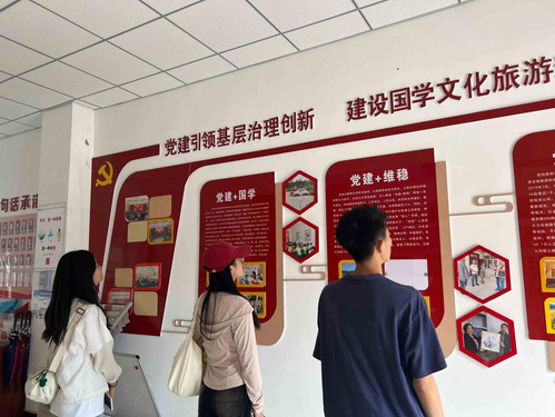 8月6日,实践队员走访了水西沟镇平西梁村,与平西梁村党支部副书记赵连生进行了沟通交流。之后,赵连生带领代表成员参观了平西梁村村史馆,介绍了了平西梁村的历史与发展成就和已经开展过的一些党建活动,在此发展基础上赵连生谈及了平西梁村的未来规划——将会在平西梁村已经开设的孔子学堂中持续深入传播国学、鼓励普通话,促进民族交融;以及持续鼓励平西梁村旅游业——文创园、新兴特色企业发展,为之赋能。
