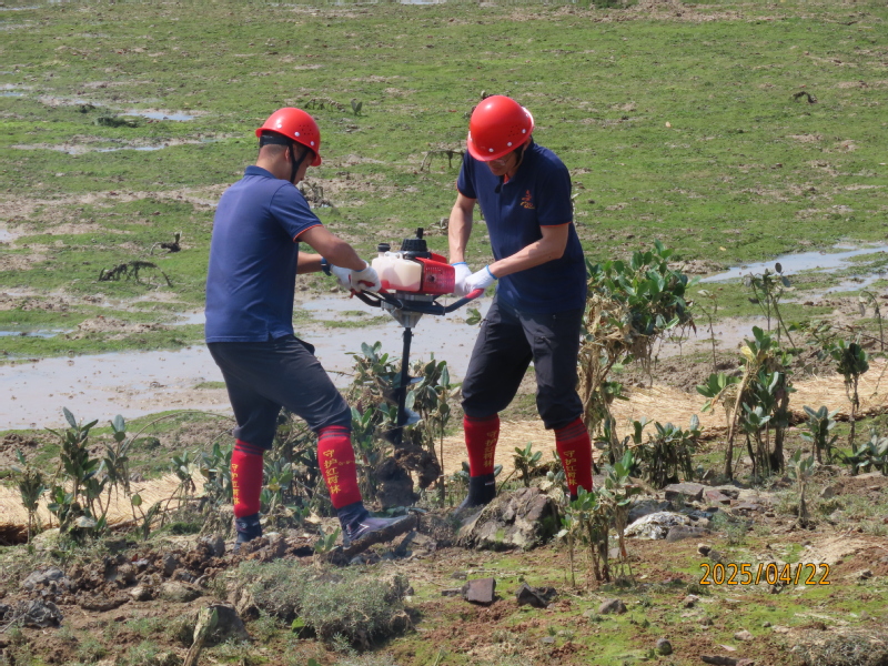 困难地钻土:针对部分区域泥土坚硬问题,技术人员使用专业钻土设备进行土质疏松与打孔作业,为红树林的生长创造更好的土壤条件。