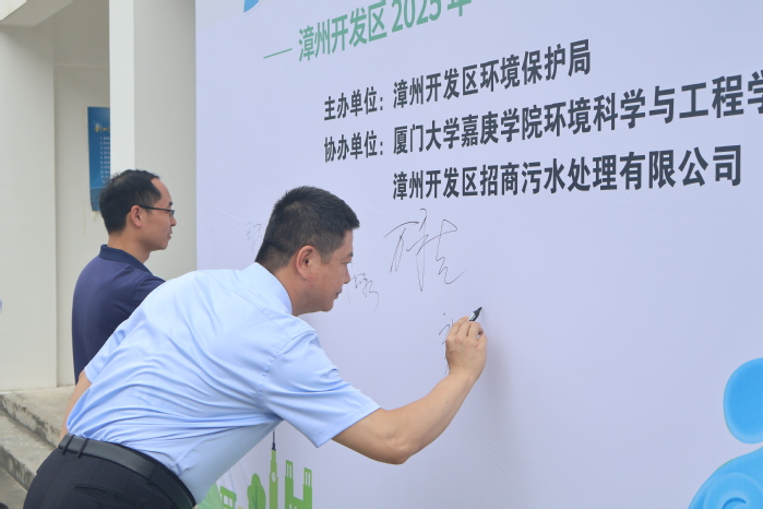 为深入贯彻习近平总书记“绿水青山就是金山银山”的生态文明理念,值此理念提出二十周年之际,2025年6月5日,漳州开发区环境保护局携手厦门大学嘉庚学院环境科学与工程学院等单位,在漳州开发区招商污水处理有限公司成功举办了“六·五”环境日“美丽中国我先行”主题活动。我院党总支周亮书记亲自带队,30余名师生积极参与,与漳州开发区环保局万永吉副局长、招商污水处理有限公司王国勇厂长等领导及工作人员共50余人,共同为环保事业发声助力。