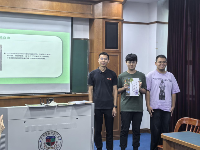 此外,互动环节成为本次讲座的一大亮点。沈晓坤老师手持《一草一木如数“嘉”珍:厦门大学嘉庚学院校园植物》一书,让同学近距离抢答PPT上显示的植物保护碑可能存在的瑕疵,答对者获得一本沈晓坤老师主编的《一草一木,如数“嘉”珍》,让同学们在面对面的互动中,更直观地感受“嘉园”草木的独特魅力。