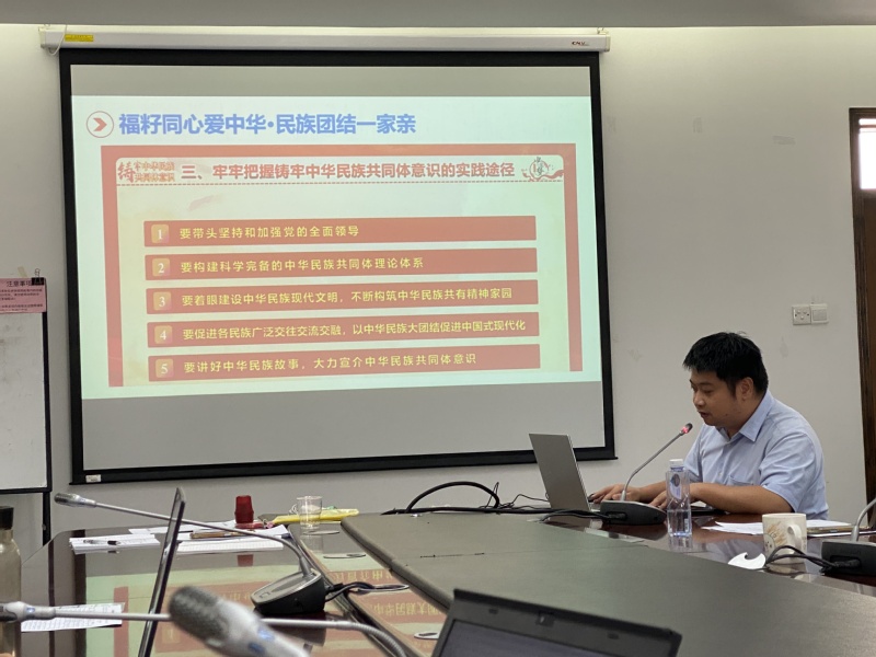 今年9月正值福建省“福籽同心爱中华·第十八个民族团结进步宣传月”,9月17日,党总支组织会议,面向全体教职工开展“铸牢中华民族共同体意识,推进民族团结教育学习”活动。会上,周亮书记作了“福籽同心爱中华·民族团结一家亲——铸牢中华民族共同体意识”专题讲座,他系统梳理了“铸牢中华民族共同体意识”的提出历程与发展脉络,引导教师们深刻领悟其重大意义、丰富内涵与实践路径。周书记倡议,教师们应将所学所感融入日常教学、科研及社会服务,以科技特派员为纽带,积极服务少数民族聚居区。