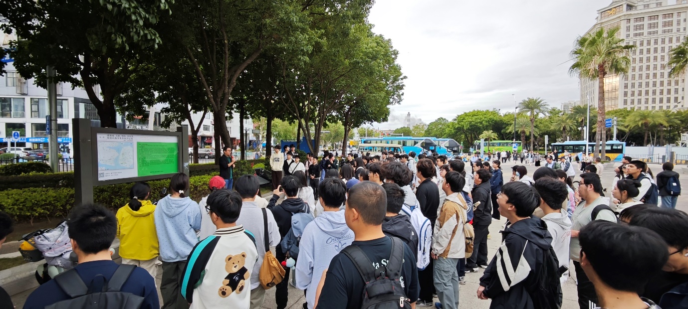 2025年11月13日,师生抵达海沧嵩屿码头蓝色海湾广场。陈慧杰老师讲述了嵩屿码头自南宋末年的历史沿革,并介绍了18公里海岸线从淤泥堆积、水质黑臭到“水清岸绿”的整治历程。