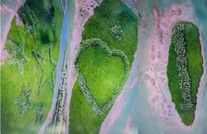 无人机升空后,学生们从空中俯瞰到下潭尾红树林湿地中由环境学院卢昌义院长设计和完成的用红树林书写的“我爱中国”,将生态景观与爱国情怀融为一体。