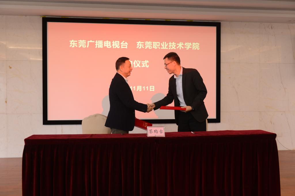 现场,东莞广播电视台党委委员、副台长廖唯方与校党委委员、副校长杨云奇共同签署了合作协议。根据协议,双方将充分发挥各自优势,在共建合作基地、专业建设、实习实训、社会服务等方面展开深度合作,进一步探索产校合作创新模式 ,更好地服务东莞经济社会发展。