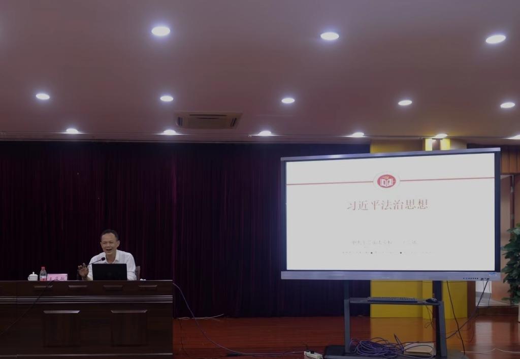 宣讲会邀请了中共东莞市委党校政法教研部主任、副教授王学敏老师前来授课。王学敏老师从对法治国家的理解、习近平法治思想的理论与实践渊源、核心要义及贯彻习近平法治思想的实践要求等四个方面展开论述,从全面依法治国政治方向、工作布局、重点任务、重要保障等层面重点阐述了习近平法治思想的“十一个坚持”的核心要义。
