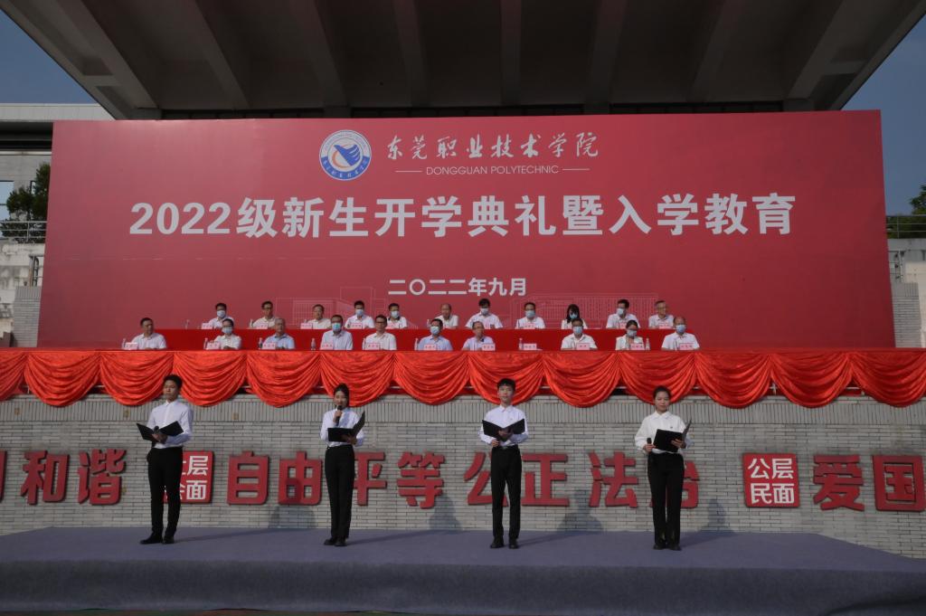 贺定修校长在讲话中代表学校全体师生员工,对成为新一代东职人的新同学,表示热烈的欢迎,他表示,当今中国,职业教育很有“奔头”,来到东莞,技能人才真的“吃香”,走进东职,大学生活非常“精彩”。他通过四问四答,以生动案例对新生提出期望:希望你们把人生选择与时代需要熔铸在一起,在东职这片充满活力的热土上不断历练成长,以奋斗之青春向党和祖国、向父母亲朋、向学校老师作出最精彩的回答。