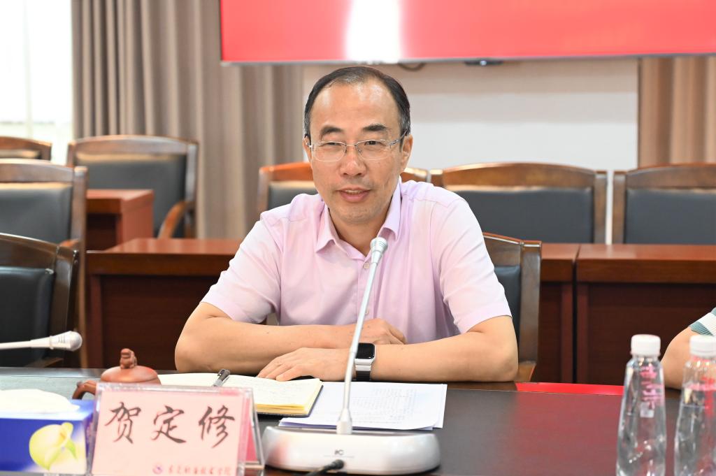 座谈会上,贺定修校长对朱建华一行的到访表示热烈欢迎,并详细介绍了我校的办学历程、发展目标、专业建设及校企合作等方面的情况。随后,双方重点围绕学校“十五五”发展规划编制和调研、国家“双高计划”建设及本科层次职业学校筹备建设等方面展开深入的交流和分享,互相汲取相关工作经验,并就重点专业建设、产教融合及行业企业支持办学等议题展开讨论和交流。