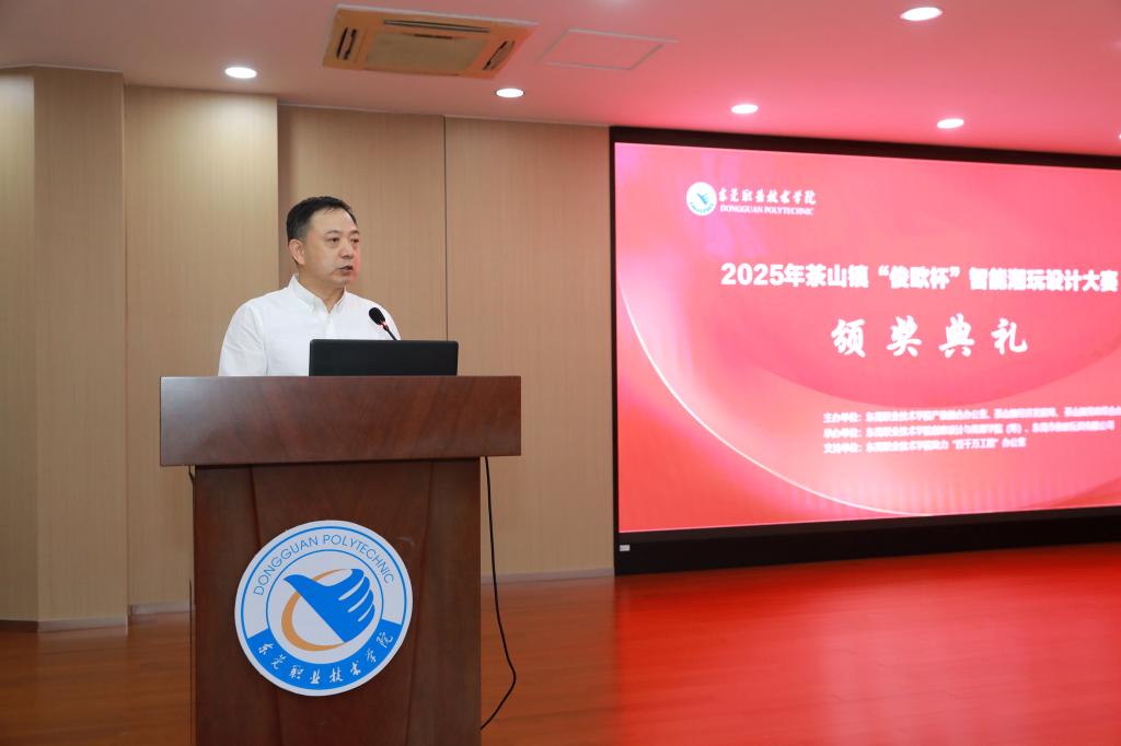 10月22日下午,茶山镇“俊欧杯”智能潮玩设计大赛颁奖典礼在我校立德楼B201举行。此次活动在茶山镇“百千万工程”指挥办、茶山镇经济发展局、东莞职业技术学院“百千万工程”办公室、产教融合办公室的指导下,由我校创意设计与传媒学院(筹)与东莞市俊欧玩具有限公司负责具体实施。茶山镇党政综合办公室副主任钟芷欣,茶山镇经济发展局副局长胡素婷,东莞市俊欧玩具有限公司董事长李小华,我校党委委员、副校长杨云奇,产教融合办公室主任陈永刚,创意设计与传媒学院院长李小东等共160余人出席颁奖典礼。