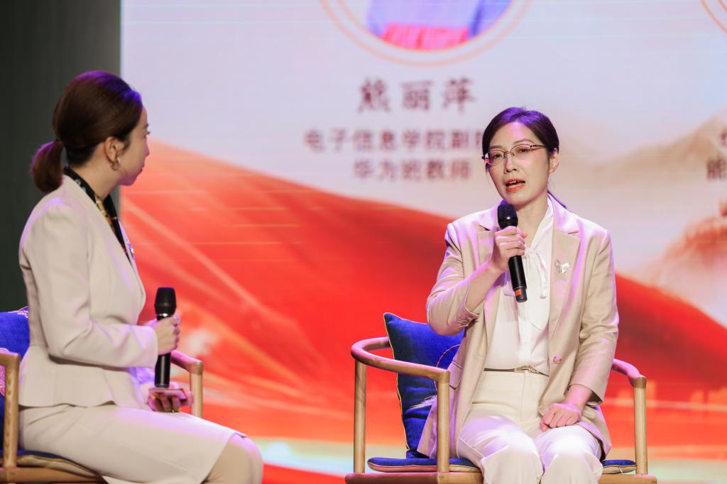 第四篇章“现代通信典范”访谈环节,企业嘉宾、学院教师、往届毕业生以及在校学生,分别从产业前沿、育人成果等多个角度,畅谈了红色电台的通信精神在新时代的传承与创新,为学子们指明了科技报国的奋斗方向。