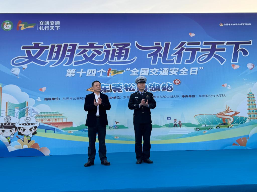 为进一步筑牢校园交通安全防线,切实提升全体师生的交通安全意识,11月26日下午,我校联合东莞市公安局交管支队松山湖大队举办122“全国交通安全日”宣传活动。学校党委委员、副校长杨云奇,东莞市公安局交管支队松山湖大队相关领导及工作人员出席活动,近300名师生参加活动。