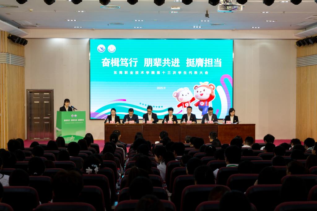 大会以“奋楫笃行 朋辈共进 挺膺担当”为主题。开幕式上,校党委书记司琪发表讲话。她充分肯定了过去一年学生会的工作成果,包括红色文化传播、社会实践、志愿服务及校园文化建设等方面的亮眼表现,如“粤青春·井冈情”实践队入选全国优秀成果、东职学子投身十五运会志愿服务等。她指出,学生代表是学校建设发展的见证者、参与者和推动者,肩负重任。并对学生会提出三点希望:筑牢信仰之基,传承红色基因;践行服务之本,成为同学贴心人;勇担时代之责,助力东莞发展,争做生力军,共同谱写无愧于时代的青春篇章。