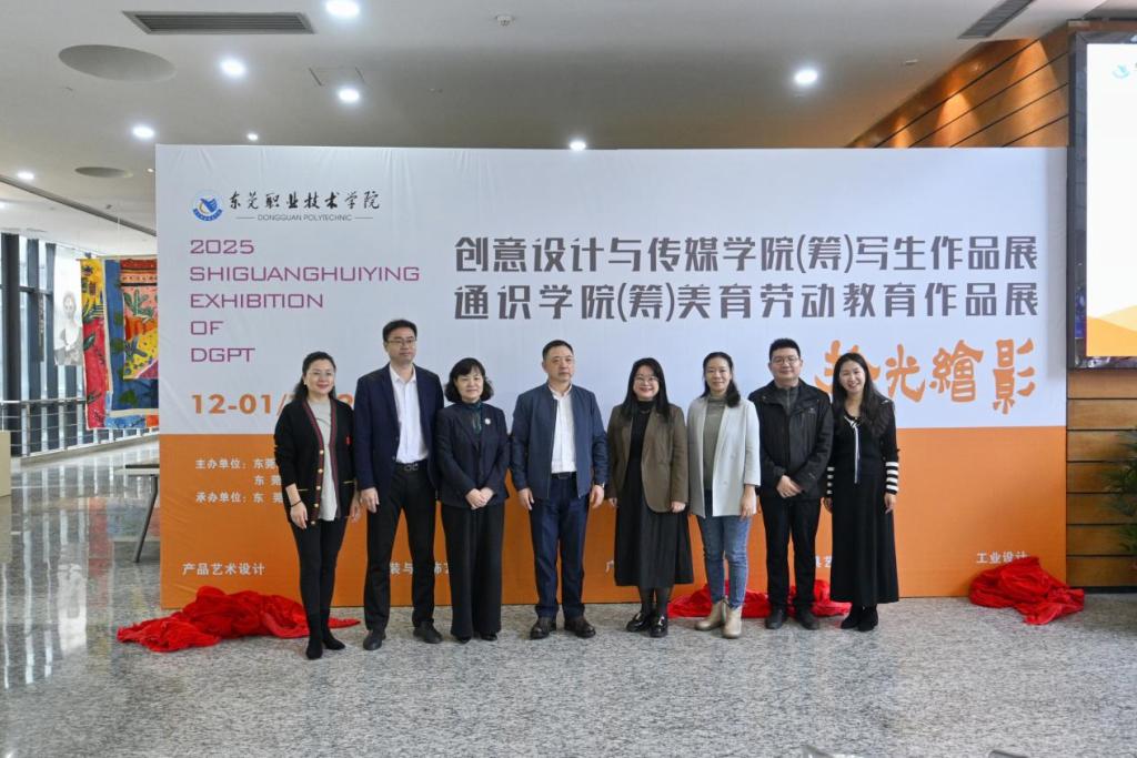 为深入贯彻落实“五育并举”育人理念,推动美育与劳动教育深度融合,12月3日上午,我校创意设计与传媒学院(筹)与通识学院(筹)联合主办的“2025拾光绘影”写生和美育劳育作品展揭幕仪式暨美育、劳动教育实践基地授牌仪式在松山湖图书馆开幕。我校党委委员、副校长杨云奇,东莞图书馆副馆长莫启仪、松山湖宣传教育文体旅游局二级主任科员王润妃、我校创意设计与传媒学院(筹)党组织负责人车美娟、通识学院(筹)行政负责人肖庆丰、创意设计与传媒学院(筹)行政副职王健、通识学院(筹)行政副职蔡莉、创意设计与传媒学院(筹)广告专业负责人张红华,东莞图书馆松山湖分管副馆长冼君宜及学生代表参与此次活动。