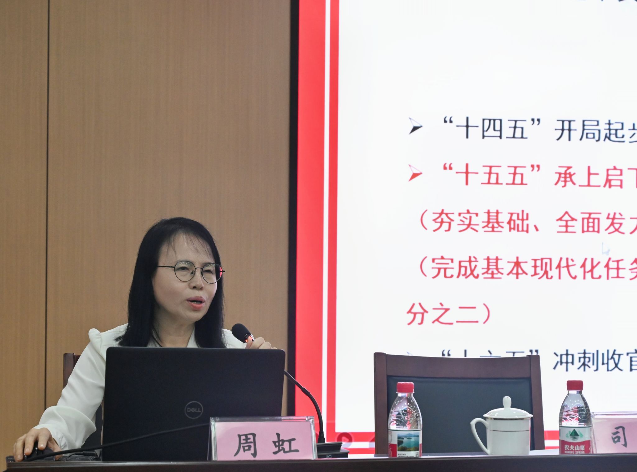 会议由党委书记司琪主持。会上,周虹教授紧扣党的二十届四中全会精神,结合了职业教育的特点和东莞、学校的发展实际,从准确把握“十五五”时期我国发展所处的历史方位、深刻领会“十五五”时期经济社会发展的总体要求、扎实推进“十五五”时期经济社会发展的战略任务以及坚决贯彻为实现“十五五”规划而奋斗的主要部署四个方面进行一场重点突出、阐释深刻的辅导报告。