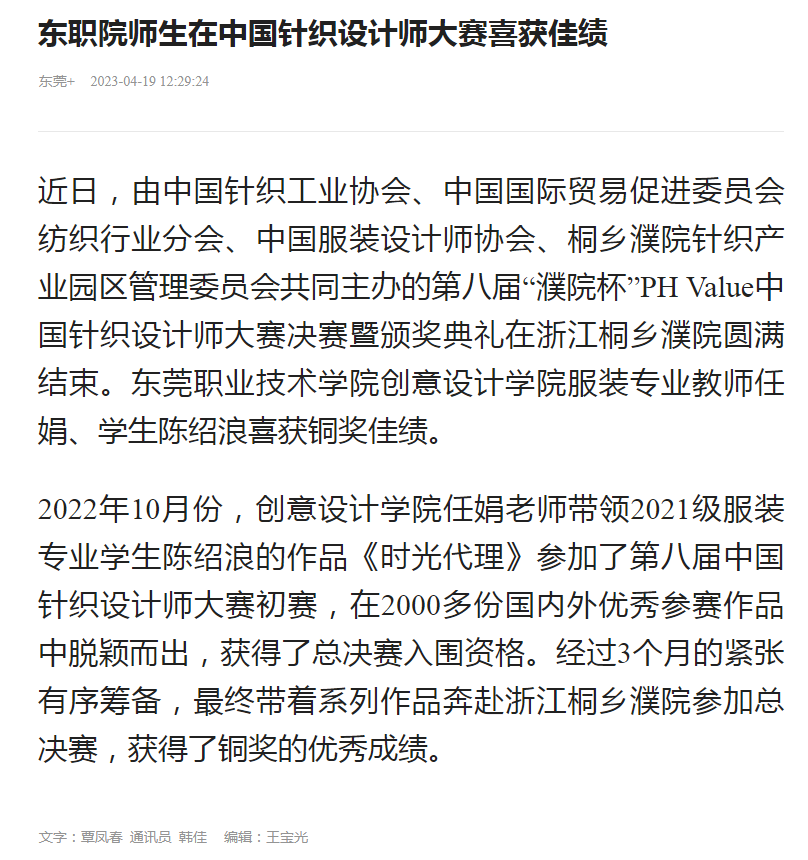 【东莞+】东职院师生在中国针织设计师大赛喜获佳绩