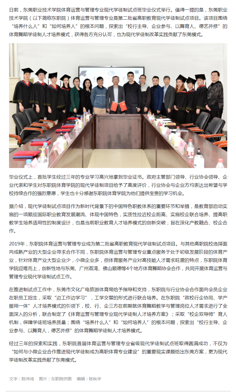 【东莞+】东职院体育运营与管理专业省级现代学徒制试点工作获肯定