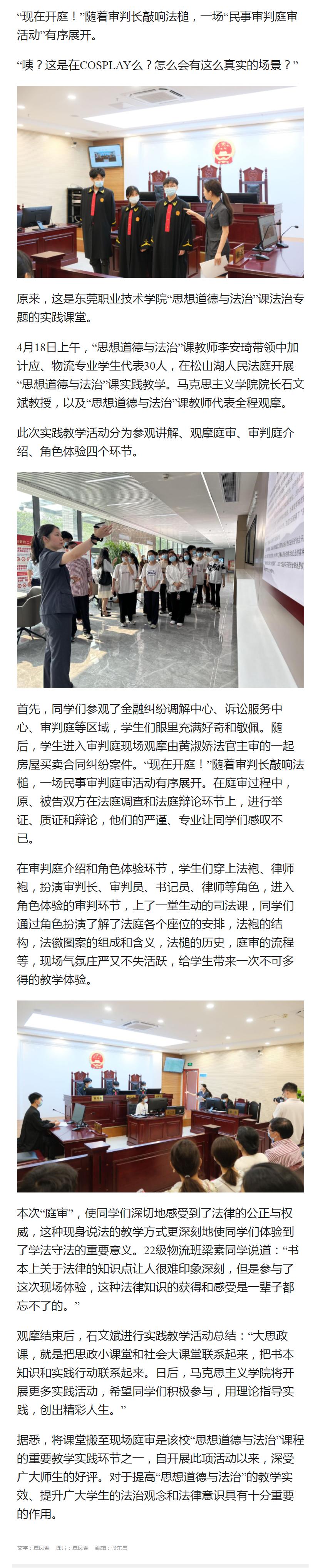 【东莞+】将思政课搬进法庭!东职院创新实践教学形式