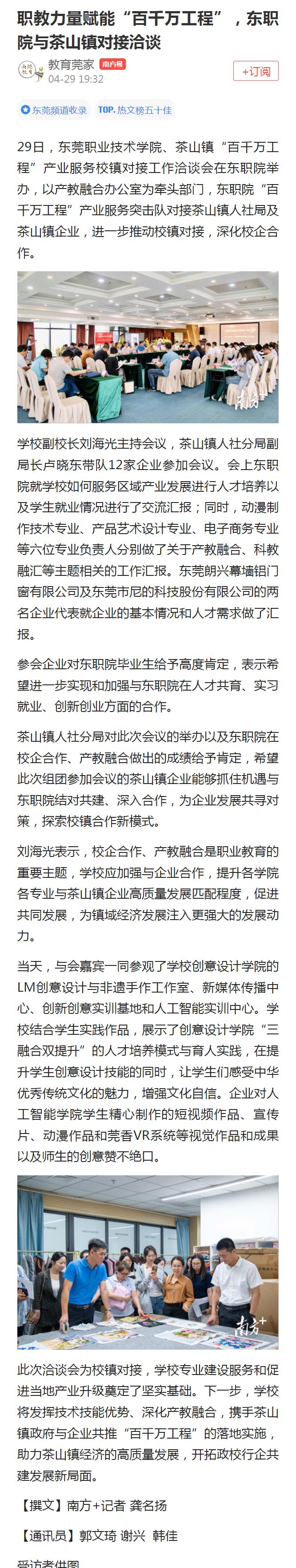 【南方+】职教力量赋能“百千万工程”,东职院与茶山镇对接洽谈