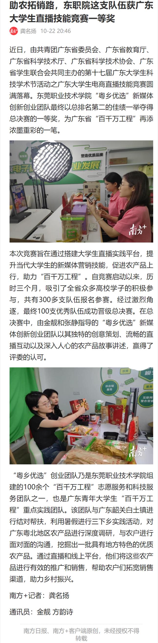【南方+】助农拓销路,东职院这支队伍获广东大学生直播技能竞赛一等奖