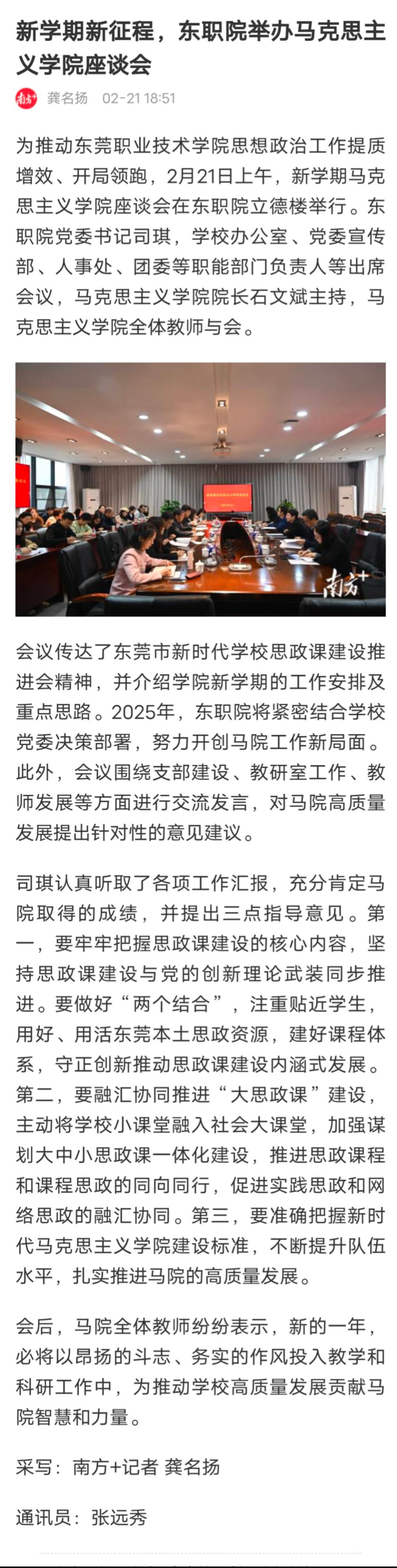 【南方+】新学期新征程,东职院举办马克思主义学院座谈会