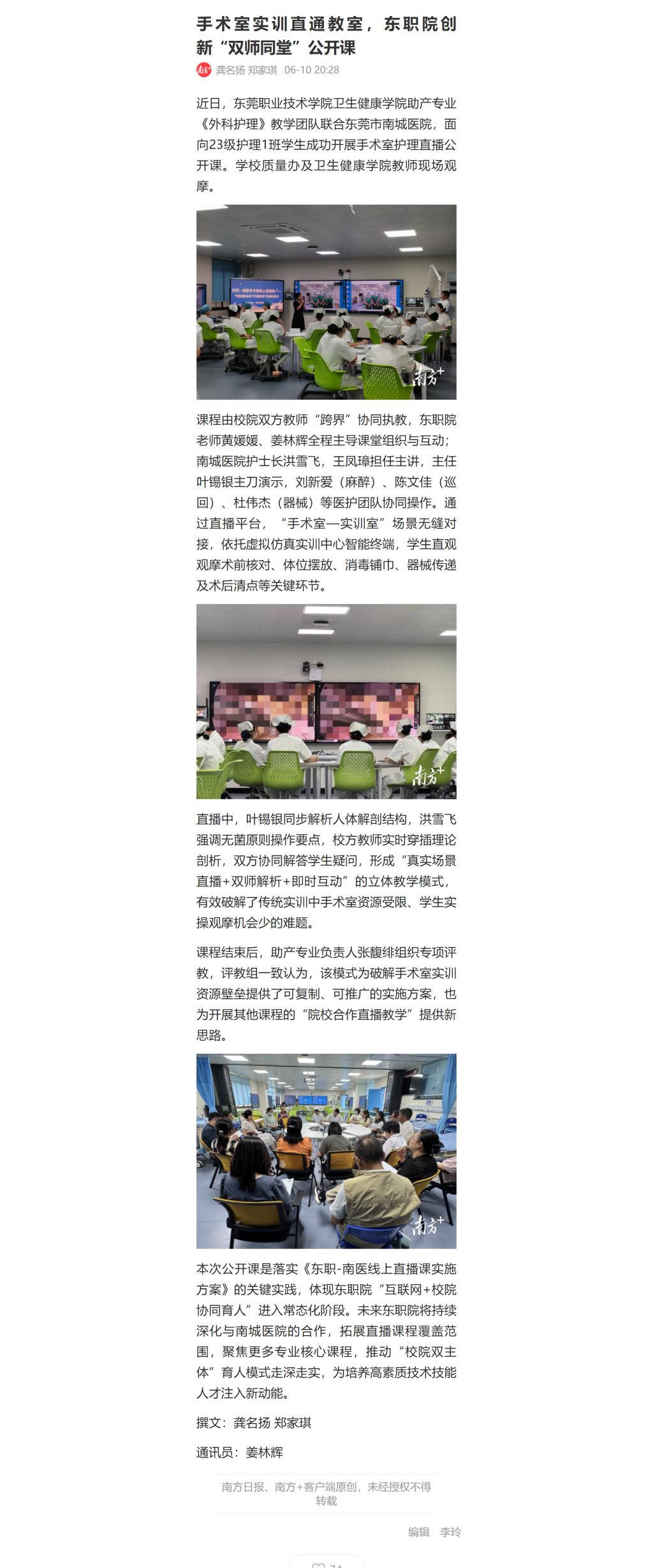 【南方+】手术室实训直通教室,东职院创新“双师同堂”公开课