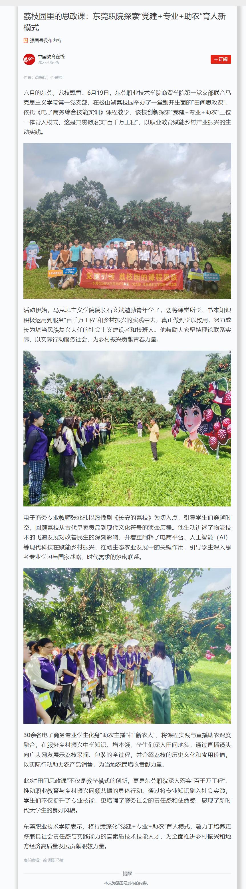 【学习强国】荔枝园里的思政课:东莞职院探索“党建+专业+助农”育人新模式