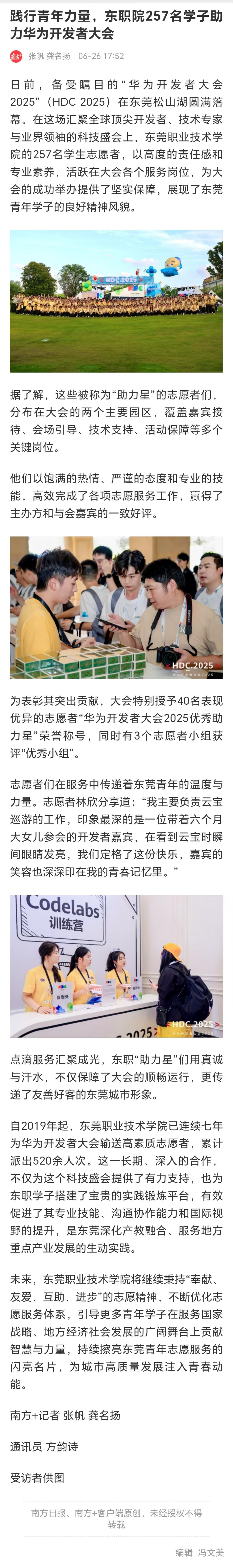 【南方+】践行青年力量,东职院257名学子助力华为开发者大会