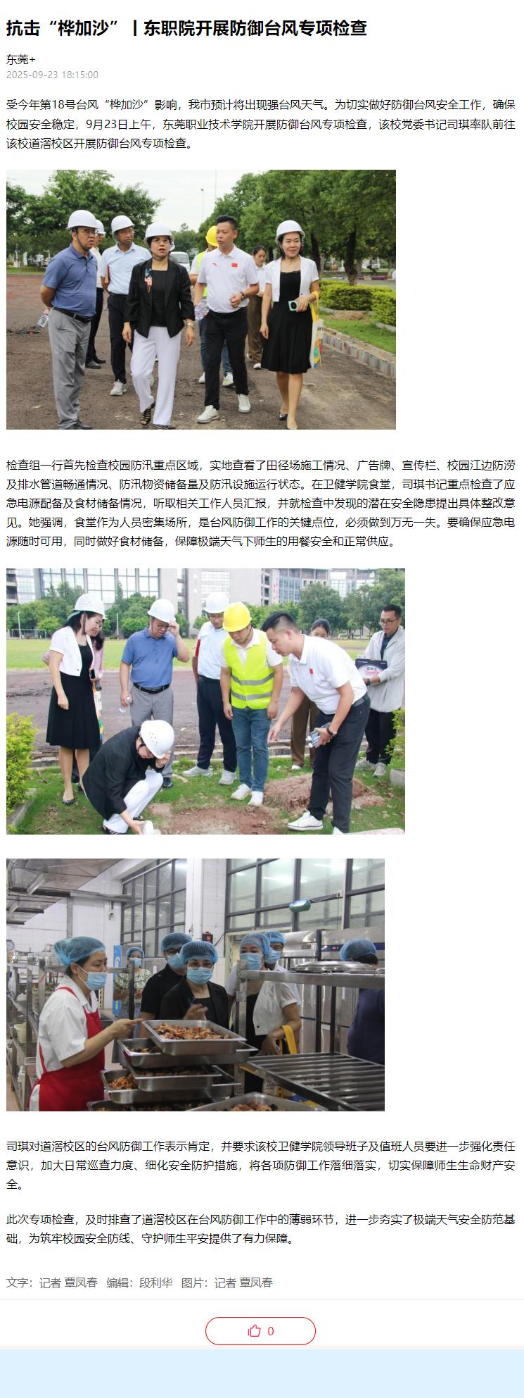 【东莞+】抗击“桦加沙”丨东职院开展防御台风专项检查