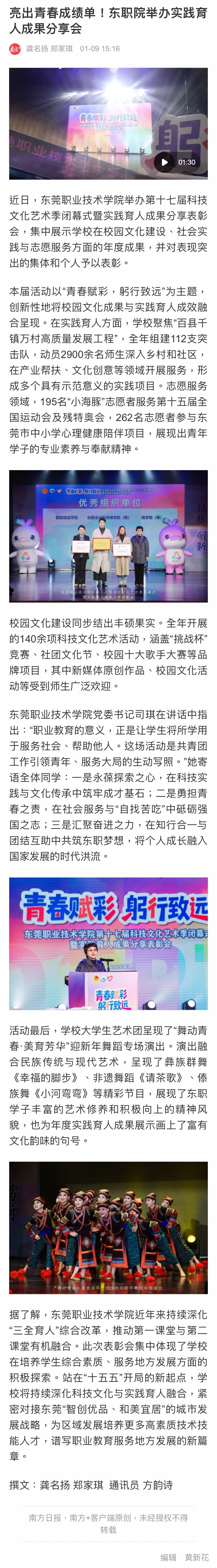 【南方+】亮出青春成绩单!东职院举办实践育人成果分享会