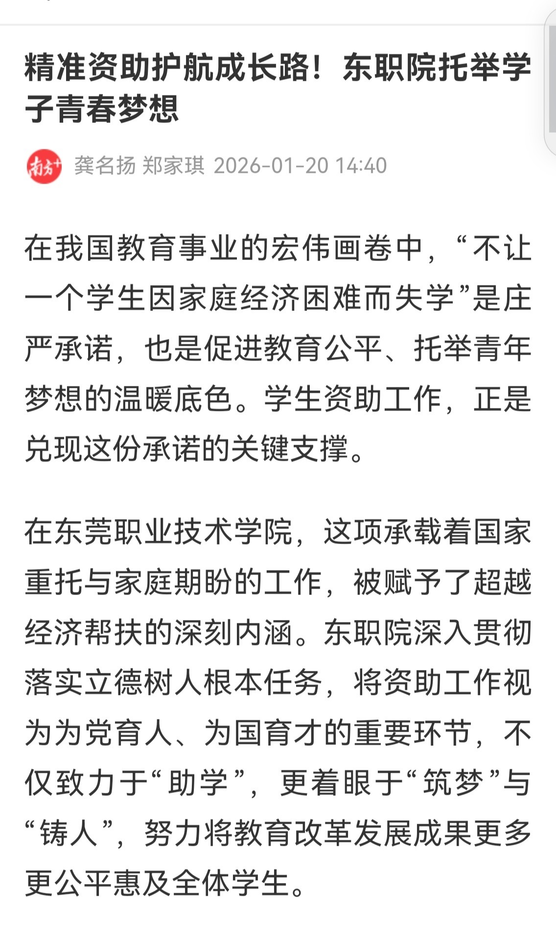 【南方+】精准资助护航成长路!东职院托举学子青春梦想