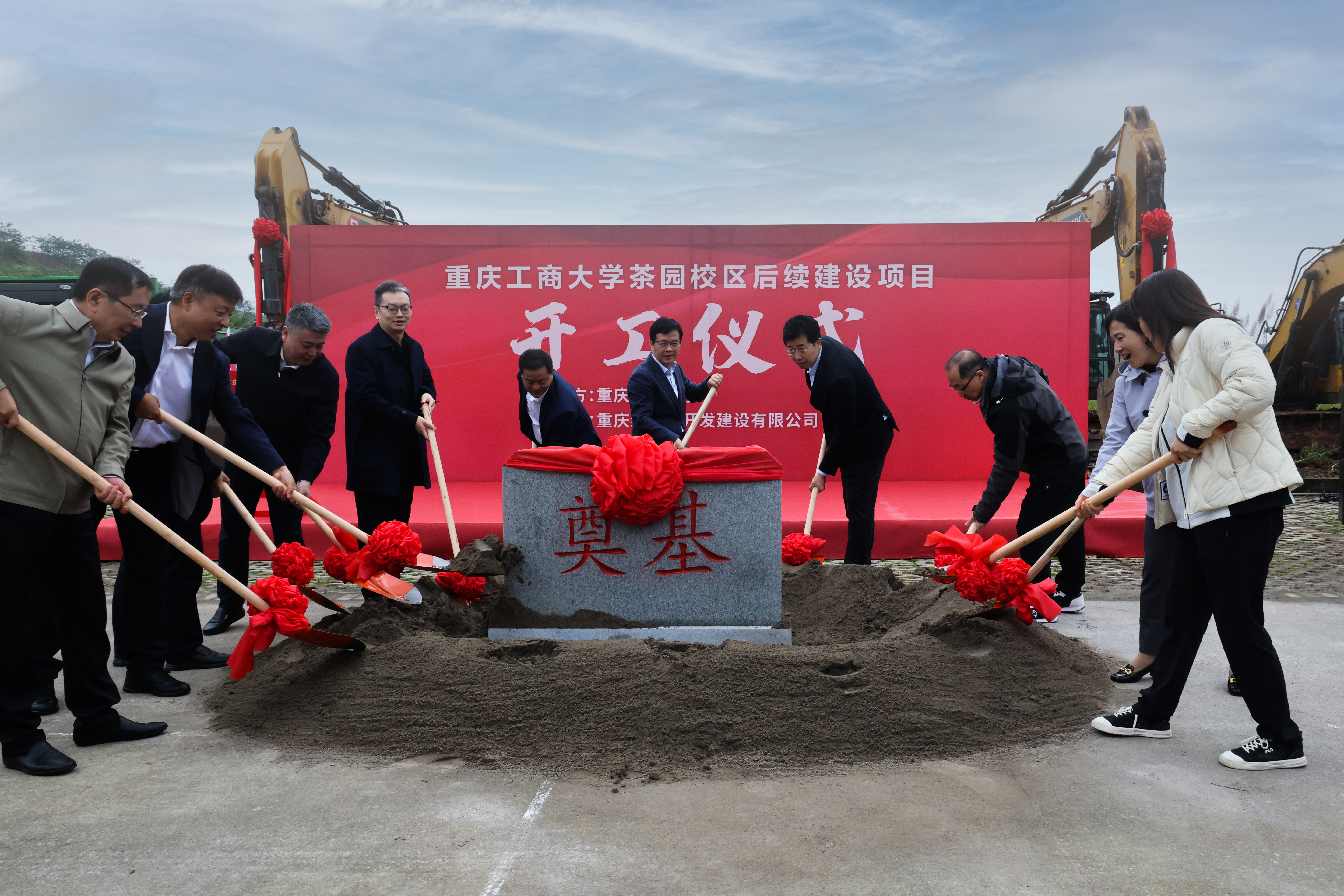 栗峥宣布重庆工商大学茶园校区后续建设项目开工。